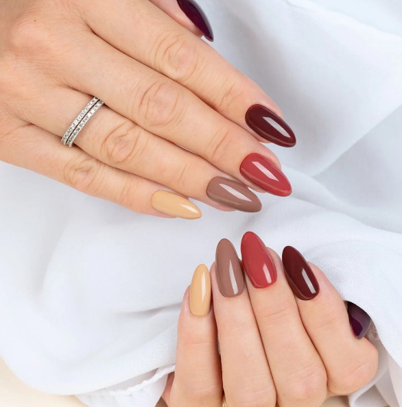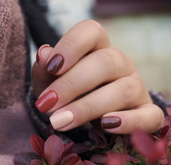 Zimą 2025 roku wracają klasyczne, głębokie kolory: bordo, espresso, ciemny brąz i czerń. Te odcienie dodają dłoniom elegancji i świetnie sprawdzają się zarówno w codziennych, jak i wieczorowych stylizacjach.