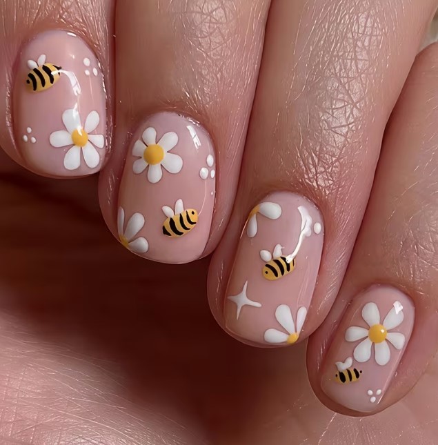 Bardzo kobiecy i subtelny. Idealny dla osób, które lubią delikatne wiosenne paznokcie.
