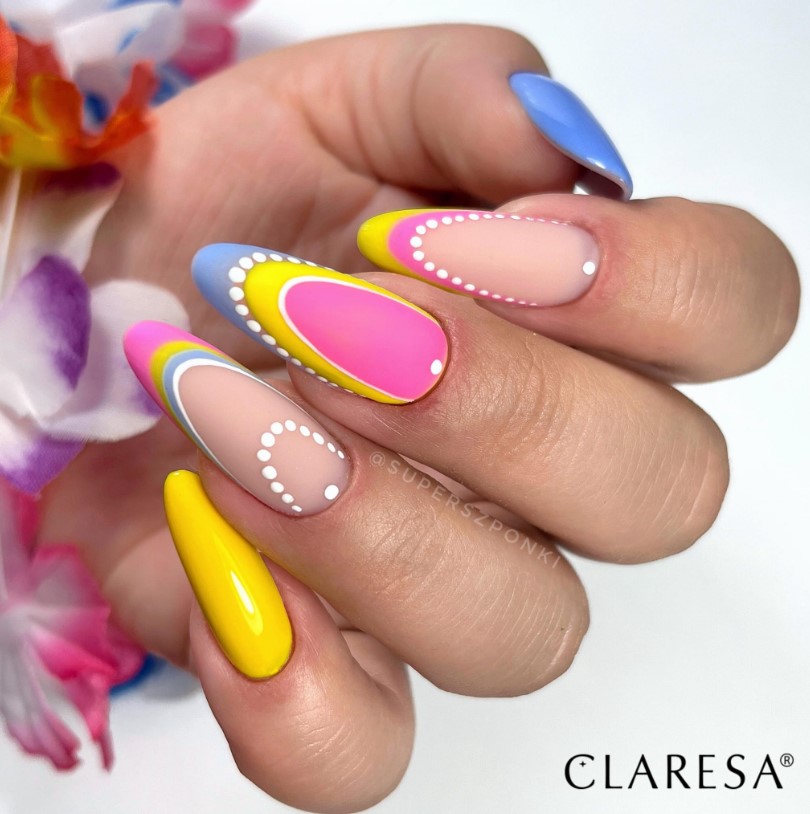 Kolorowy french lub pastelowy french zamiast klasycznej bieli.