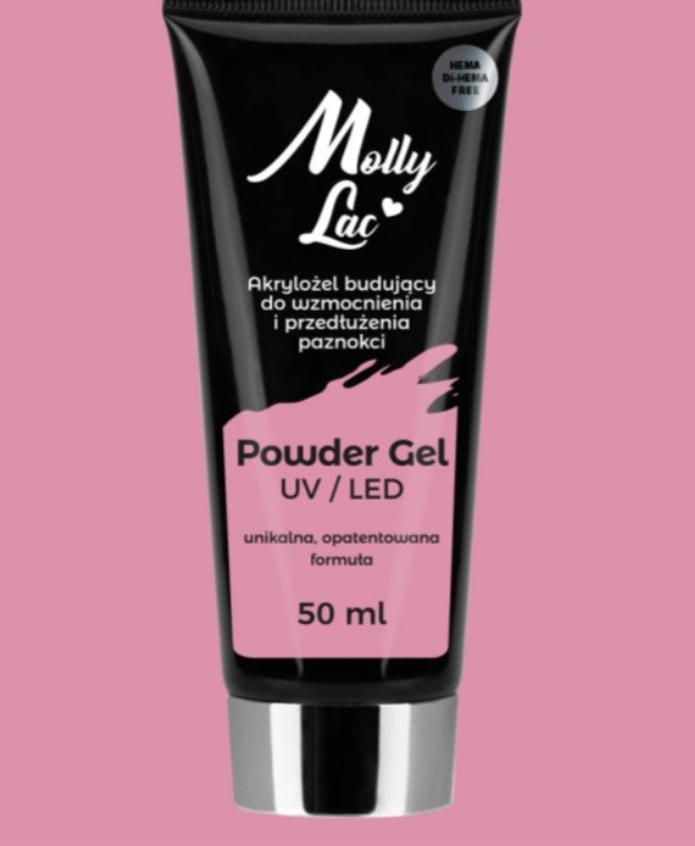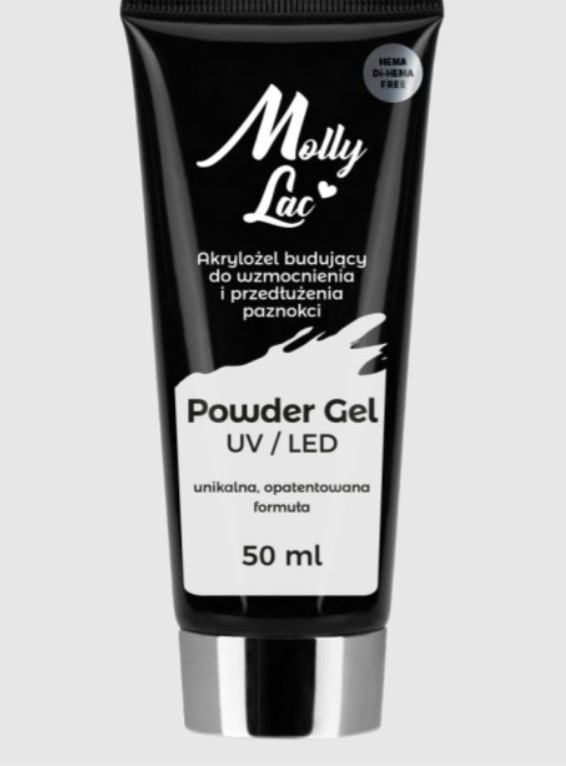 Powder Gel MollyLac to jedyny taki produkt o konsystencji modeliny, sile akrylu i elastyczności żelu. Gęsta konsystencja umożliwia ekspresowe modelowanie i wystylizowanie paznokci.