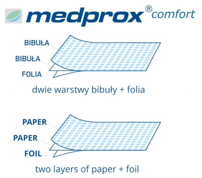 Jednorazowe Podkłady ochronne Novelmed® Basic wykonane są z dwóch warstw bibuły o wysokiej jakości zlaminowanych z jedną warstwą folii ochronnej. Sprawia to, że podkłady są lekkie, miękkie i przyjemne w dotyku, posiadają dużą wytrzymałość na rozerwanie i są nieprzemakalne, co zapewnia wysoki komfort ich użytkowania.