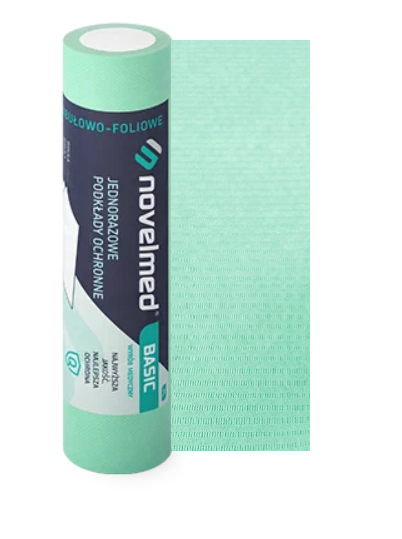 Jednorazowe Podkłady ochronne Novelmed® Basic wykonane są z dwóch warstw bibuły o wysokiej jakości zlaminowanych z jedną warstwą folii ochronnej. Sprawia to, że podkłady są lekkie, miękkie i przyjemne w dotyku, posiadają dużą wytrzymałość na rozerwanie i są nieprzemakalne, co zapewnia wysoki komfort ich użytkowania.