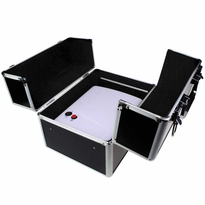 Kuferek kosmetyczny XL na lampę UV 36W z gąbką na przybory czarny ze srebrnym okuciem