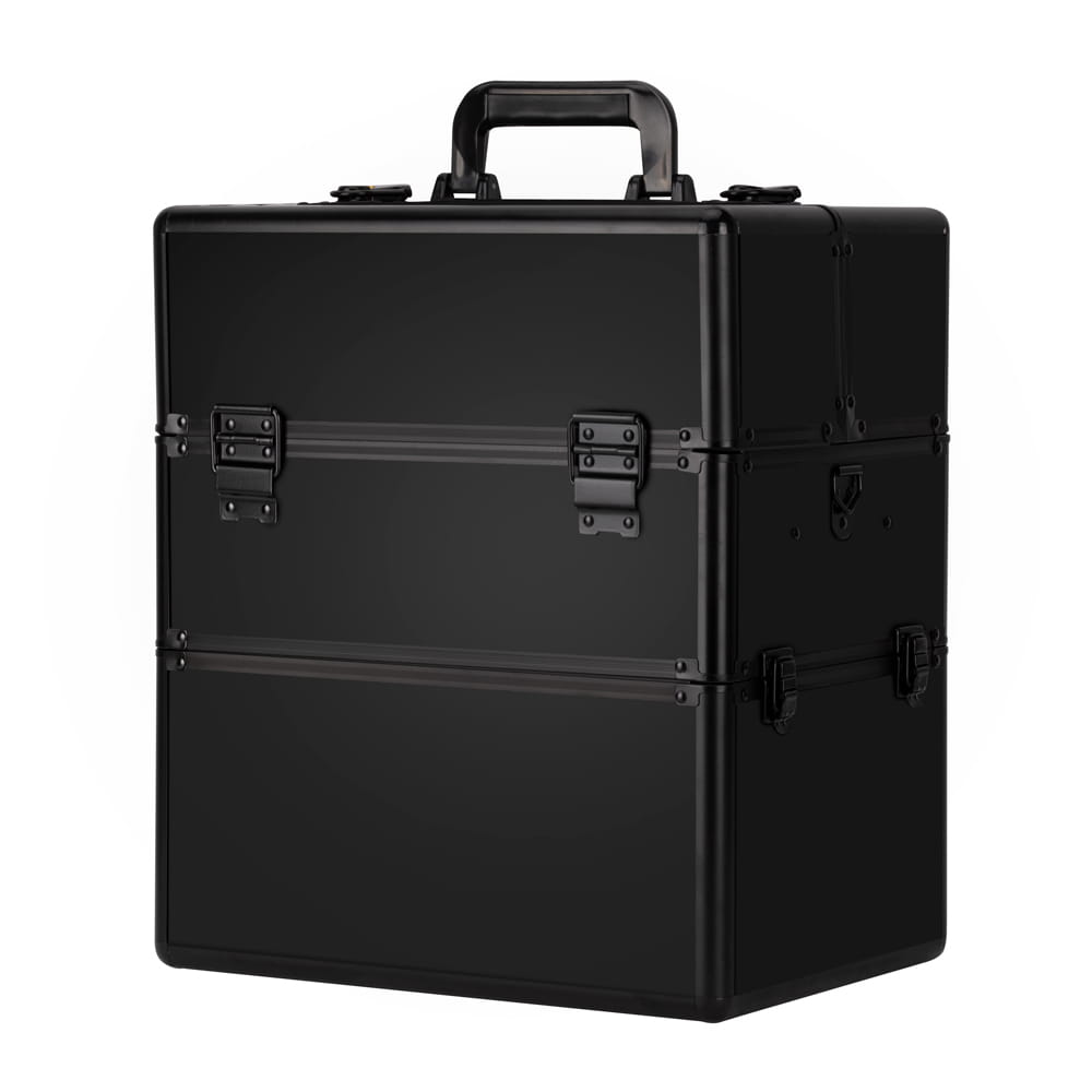 Wyjątkowo pojemny kuferek kosmetyczny na akcesoria i kosmetyki z gąbką na lakiery, preparaty i inne przybory. Idealny dla kosmetyczek i stylistek! Kufer otwierany jest dwustronnie, jest bardzo pojemny i praktyczny.