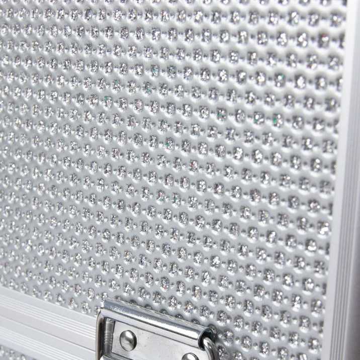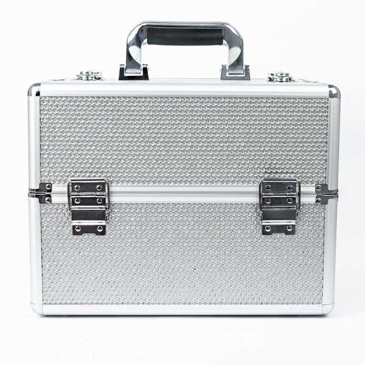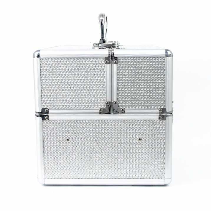 Kuferek kosmetyczny XL na lampę 36w gąbka na przybory srebrny z cyrkoniami
