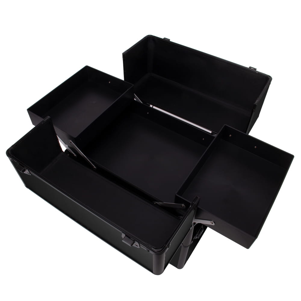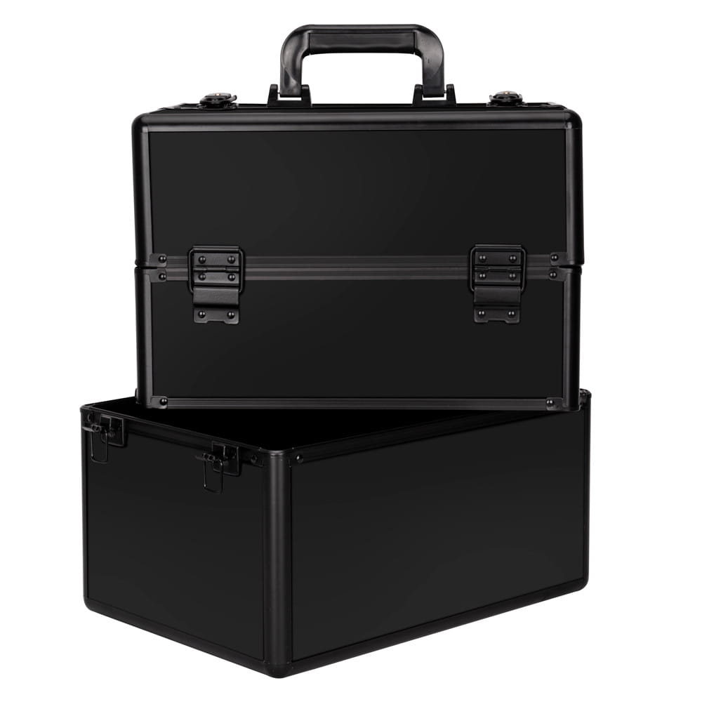 Kuferek kosmetyczny XXL dwuczęściowy gładki czarny czarne okucia