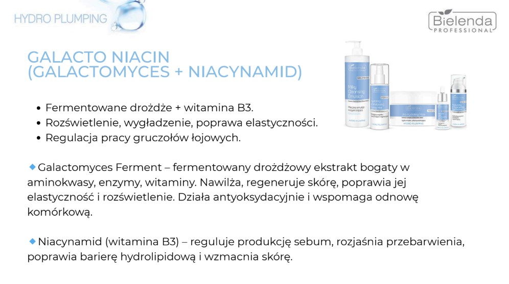 Galacto Niacin (Galactomyces + Niacynamid) – rozświetlenie i wyrównanie kolorytu.