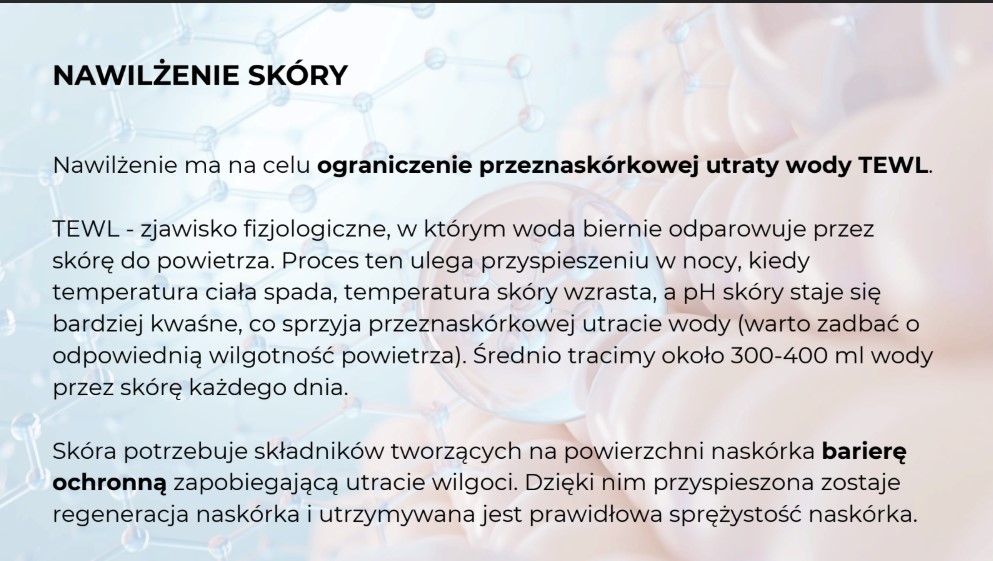 Informacja o zabiegu: Nawilżenie i regeneracja skóry