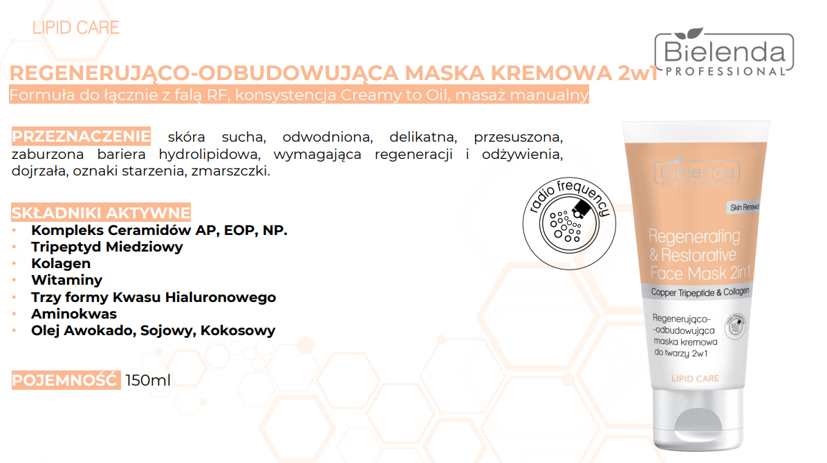 - LIPID CARE Regenerująco-odbudowująca maska kremowa do twarzy 2w1 RF, 150ml