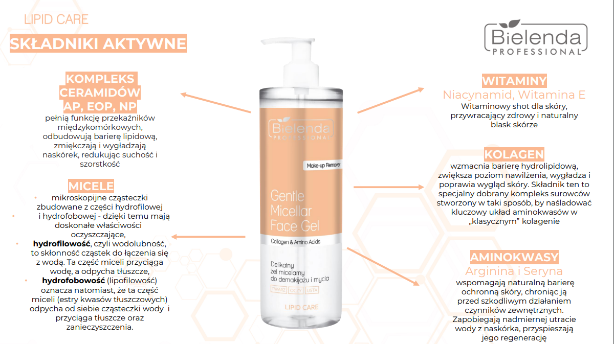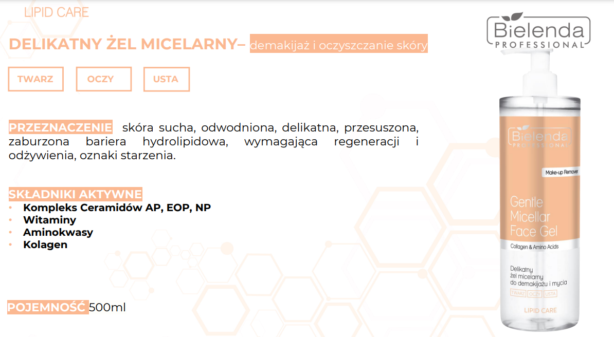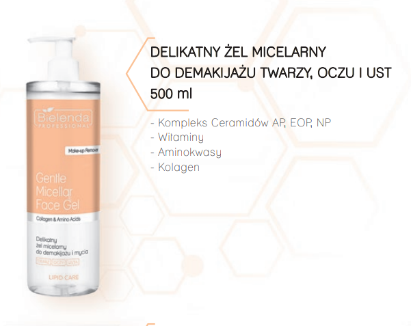 - LIPID CARE Delikatny żel micelarny do demakijażu twarzy, oczu i ust, 500ml