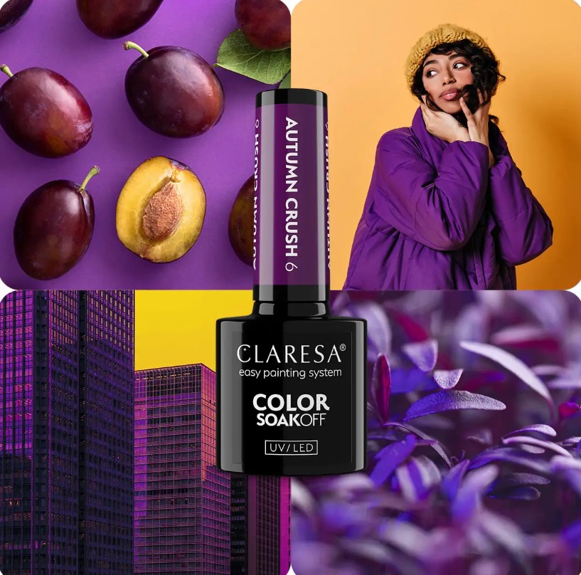 Claresa Autumn Crush 6 to głęboka, ciemna śliwka z nutą fioletu – idealny wybór dla kobiet, które lubią tajemnicze i zmysłowe stylizacje. Ten romantyczny odcień świetnie sprawdzi się w jesiennych manicure, dodając dłoniom klasy i elegancji, szczególnie podczas wieczornych wyjść i chłodniejszych dni.