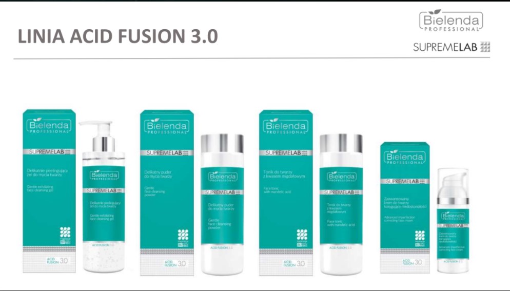 Seria o działaniu restrukturyzującym skórę, zawierająca takie składniki aktywne, jak kwas migdałowy, kwas salicylowy, skwalan oraz kwas azelainowy. Przeznaczona dla osób zmagających się z przebarwieniami różnego pochodzenia, a także nierównym kolorytem skóry i drobnymi zmarszczkami. Pomaga w walce z trądzikiem oraz nadmiernym wydzielaniem sebum. Produkty z serii Acid Fusion 3.0 przeciwdziałają starzeniu się skóry i pomagają pozbyć się niedoskonałości.