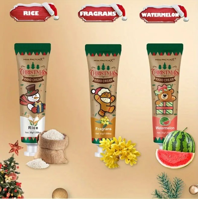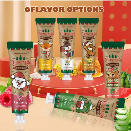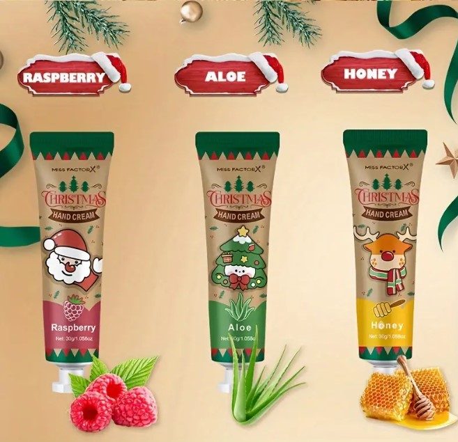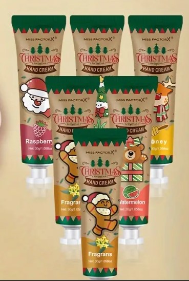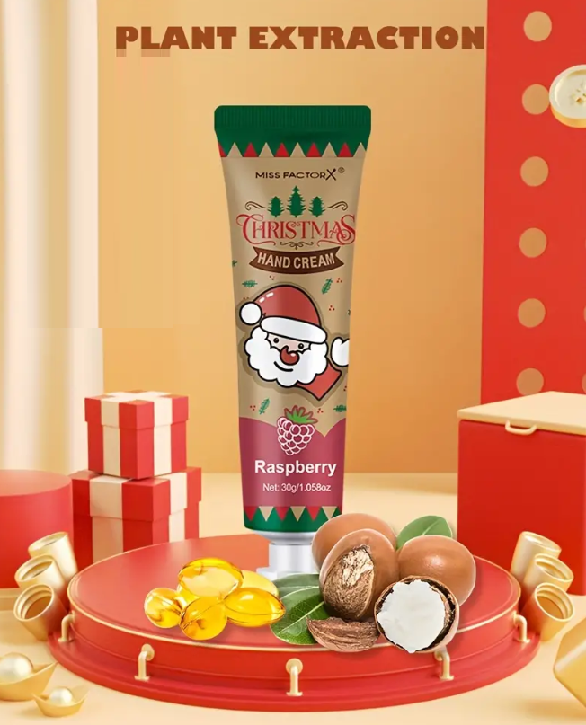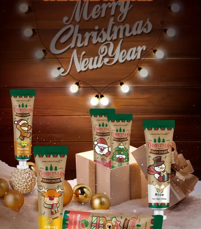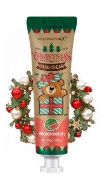 MERRY CHRISTMAS to uroczy, kompaktowy krem do rąk MISS FACTORX, idealny jako drobny prezent świąteczny lub upominek na każdą okazję. Lekka, szybko wchłaniająca się formuła intensywnie nawilża, wygładza i pielęgnuje skórę dłoni. Krem pozostawia hands miękkie, elastyczne i delikatnie pachnące — zapach i kolor tubki dobierany jest losowo.