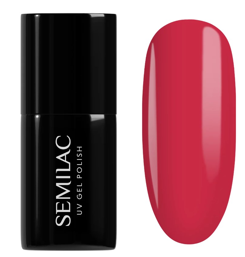 lakier hybrydowy jelly, czerwony lakier hybrydowy, malinowy lakier hybrydowy, półtransparentny lakier hybrydowy, jelly nails, glass nails lakier hybrydowy, lakier hybrydowy 7 ml, lakier hybrydowy Semilac Jelly Kiss, manicure hybrydowy czerwony.