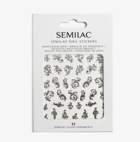 12 Semilac Nail Stickers SILVER Ornaments naklejki wodne ornamenty srebrne