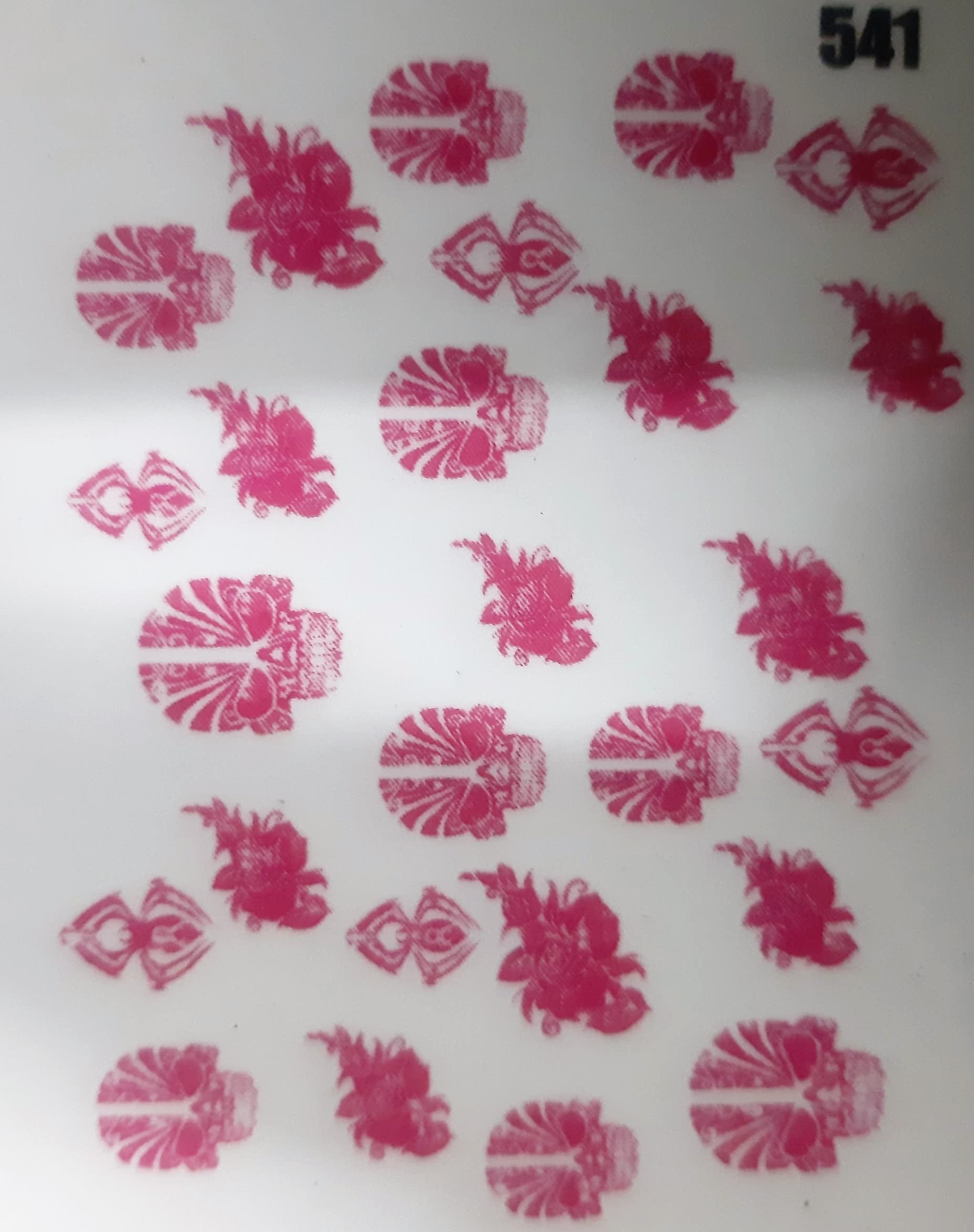 4. Przygotuj  naczynie z wodą. Wytnij z szablonu naklejkę, którą chcesz przykleić i włóż ją do naczynia. Naklejkę wytnij możliwie najbliżej upragnionego wzoru, ponieważ naklejka odchodzi z folią według wycięcia. Po około 30 sekundach naklejkę, która odkleiła się od kartonika należy pęsetą delikatnie wyłowić i nanieść na paznokieć