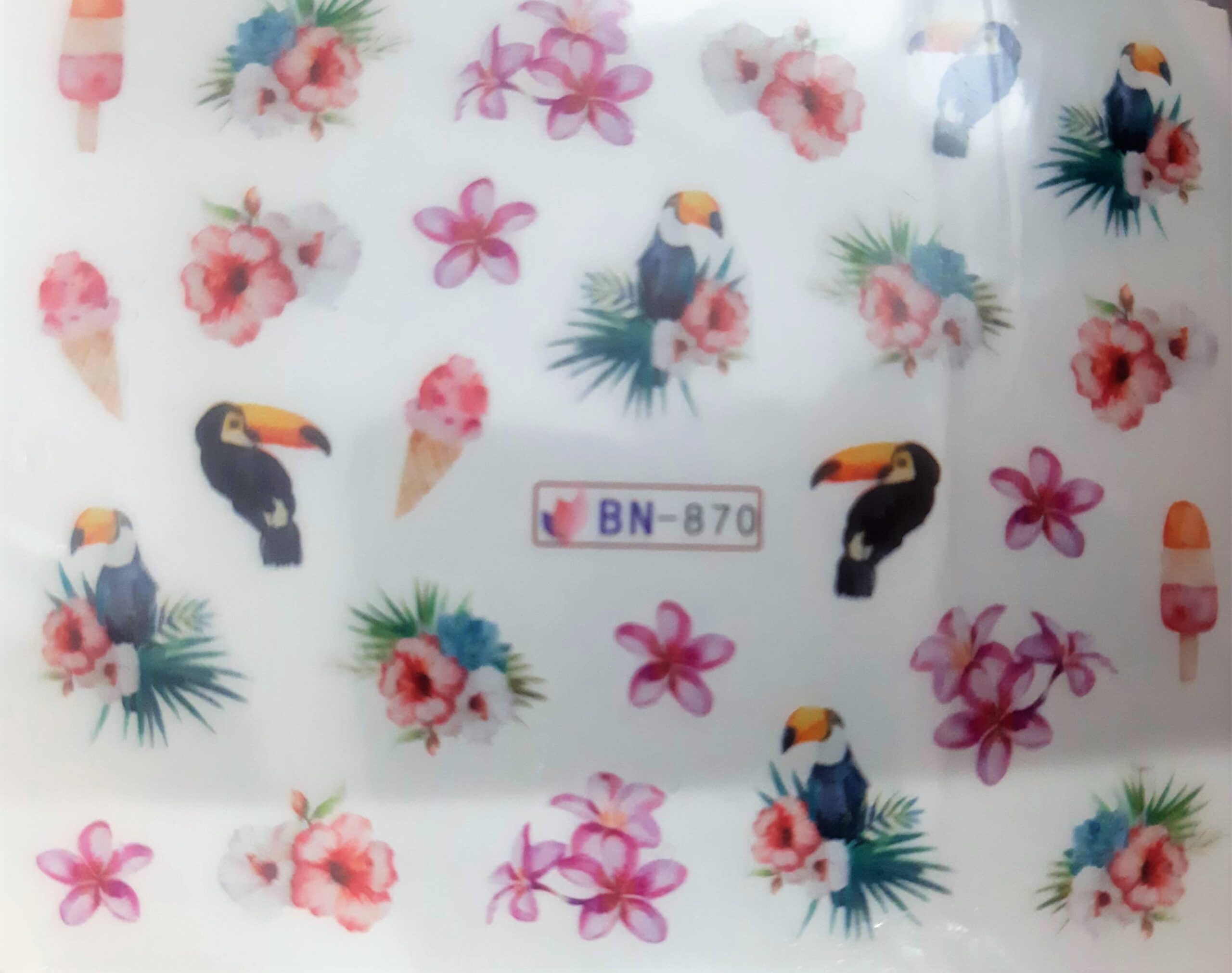 - Przygotuj naczynie z wodą. Wytnij z szablonu naklejkę, którą chcesz przykleić i włóż ją do naczynia. Naklejkę wytnij możliwie najbliżej upragnionego wzoru, ponieważ naklejka odchodzi z folią według wycięcia. Po około 30 sekundach naklejkę, która odkleiła się od kartonika należy pęsetą delikatnie wyłowić i nanieść na paznokieć