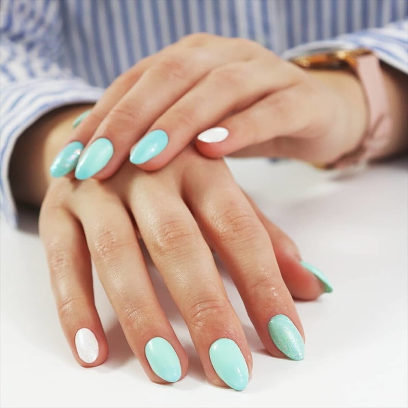 Pyłek do stylizacji paznokci 2g Glittery Effect No. 01 – złoto – niebieski.