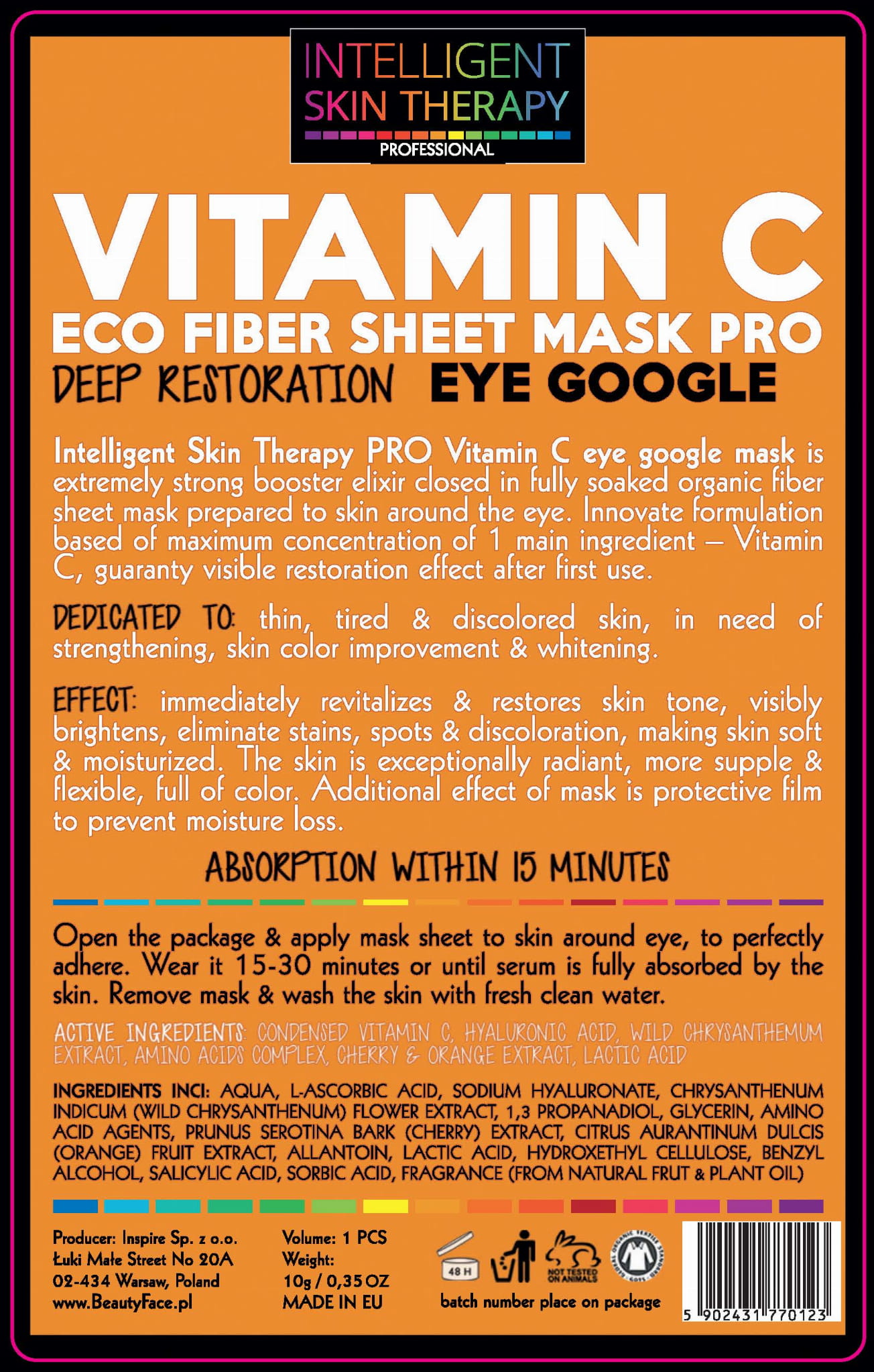 Unikatowa formuła maski w postaci wysokiej jakości tkaniny, nasączonej serum o silnym stężeniu substancji aktywnych, gwarantuje widoczny efekt już po pierwszym zastosowaniu. Wielkość cząsteczek substancji aktywnych jest dopasowana do struktury tkanki skóry, zapewniając inteligentne wchłanianie odpowiednich substancji z maski przez te partie twarzy, które wymagają poprawy.