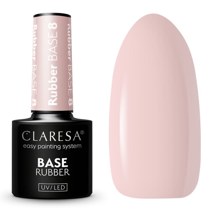 Claresa Rubber Base 1 to elastyczna, kauczukowa baza hybrydowa w kolorze subtelnego nude, która doskonale sprawdzi się na cienkiej, miękkiej, wilgotnej i problematycznej płytce paznokcia. Dzięki średniogęstej konsystencji umożliwia wygodne modelowanie, wyrównywanie i delikatne nadbudowanie płytki bez zalewania skórek. Nie wymaga użycia primera, a jej doskonała przyczepność czyni ją niezawodną bazą także pod żele i Poli Gel.