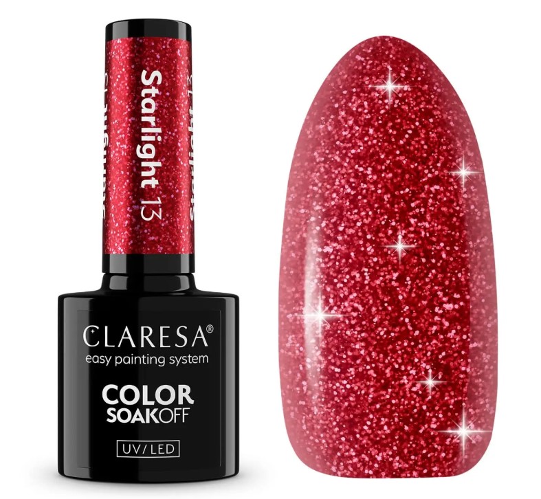 Kolekcja Starlight od Claresa to prawdziwa uczta dla fanów błysku i luksusowych, migoczących odcieni. Każdy lakier z tej serii kryje w sobie efekt flash, który w sztucznym świetle ujawnia swoją magiczną naturę. W świetle dziennym brokatowe drobinki delikatnie mienią się, tworząc subtelny blask, natomiast przy reflektorach manicure zamienia się w świetlistą taflę, przyciągając wzrok i olśniewając swoją intensywnością. Kolekcja Starlight to lakierowe niebo pełne gwiazd – idealne na wyjątkowe okazje lub jako wyrazista ozdoba codziennych stylizacji.
