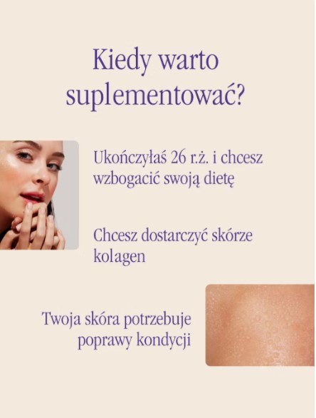 Produkt przeznaczony jest dla osób dorosłych, które chcą dostarczyć organizmowi składników wspierających zdrowie skóry i jej prawidłowe funkcjonowanie. Odpowiedni również dla osób dbających o codzienną suplementację kolagenu.