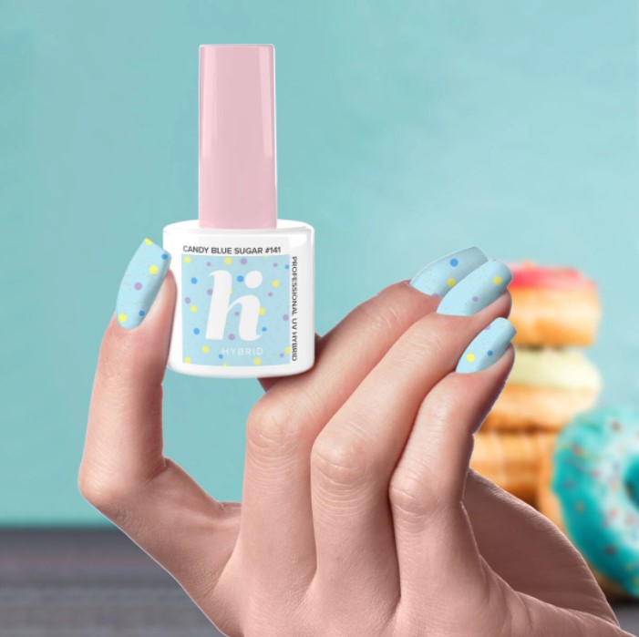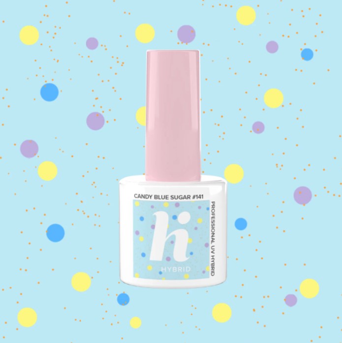 #141 Candy Blue Sugar to najsłodszy odcień niebieskiego, dzięki któremu wysmerfujesz najmodniejszy manicure w tym sezonie. Delikatnie błękitny lakier z kolorowymi kropeczkami niczym cukrowa posypka na oblanym niebieskim lukrem pączku.
