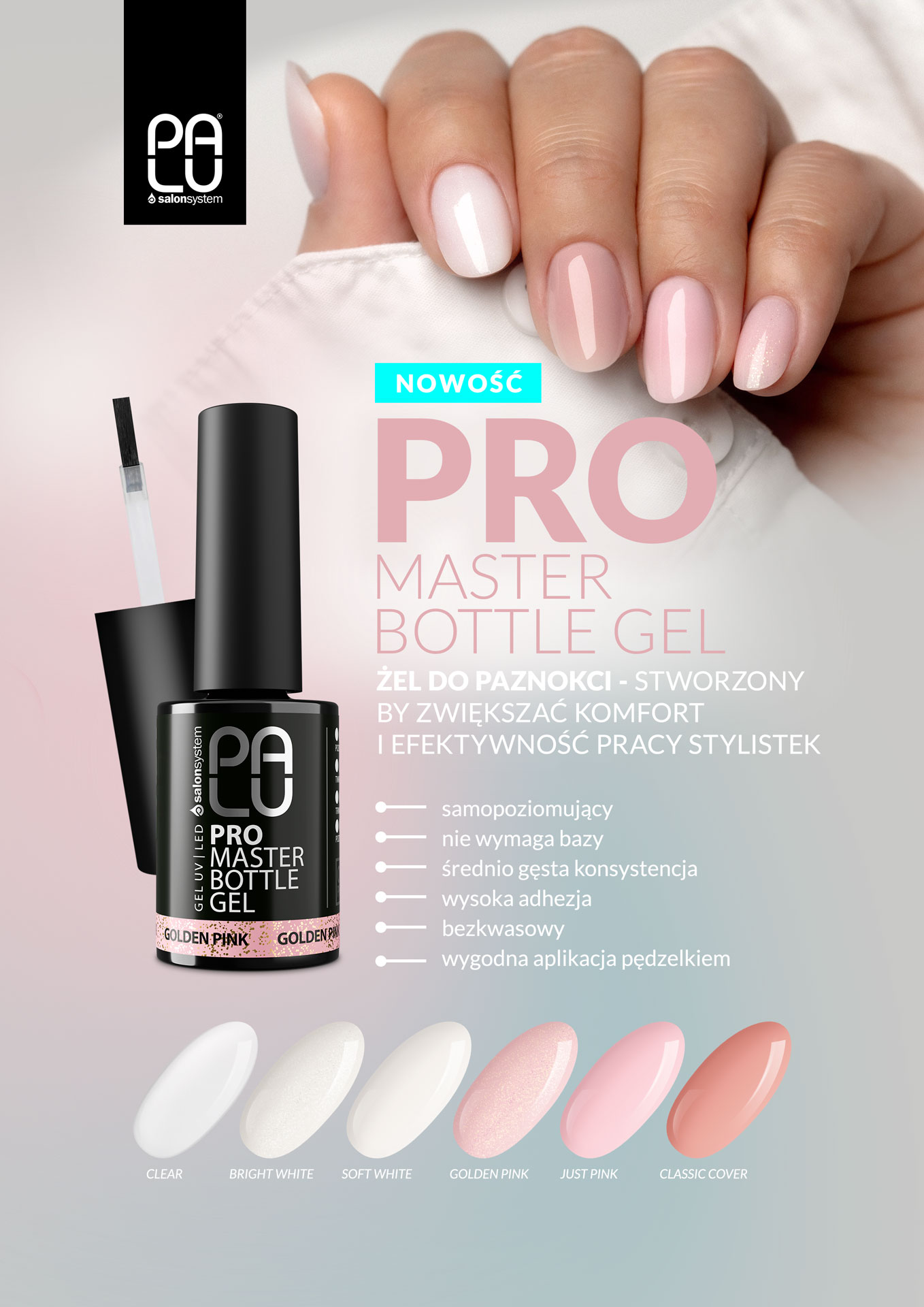 sekund. Następnie zaaplikuj cienką warstwę żelu Pro Master Bottle Gel i po chwili dołóż
