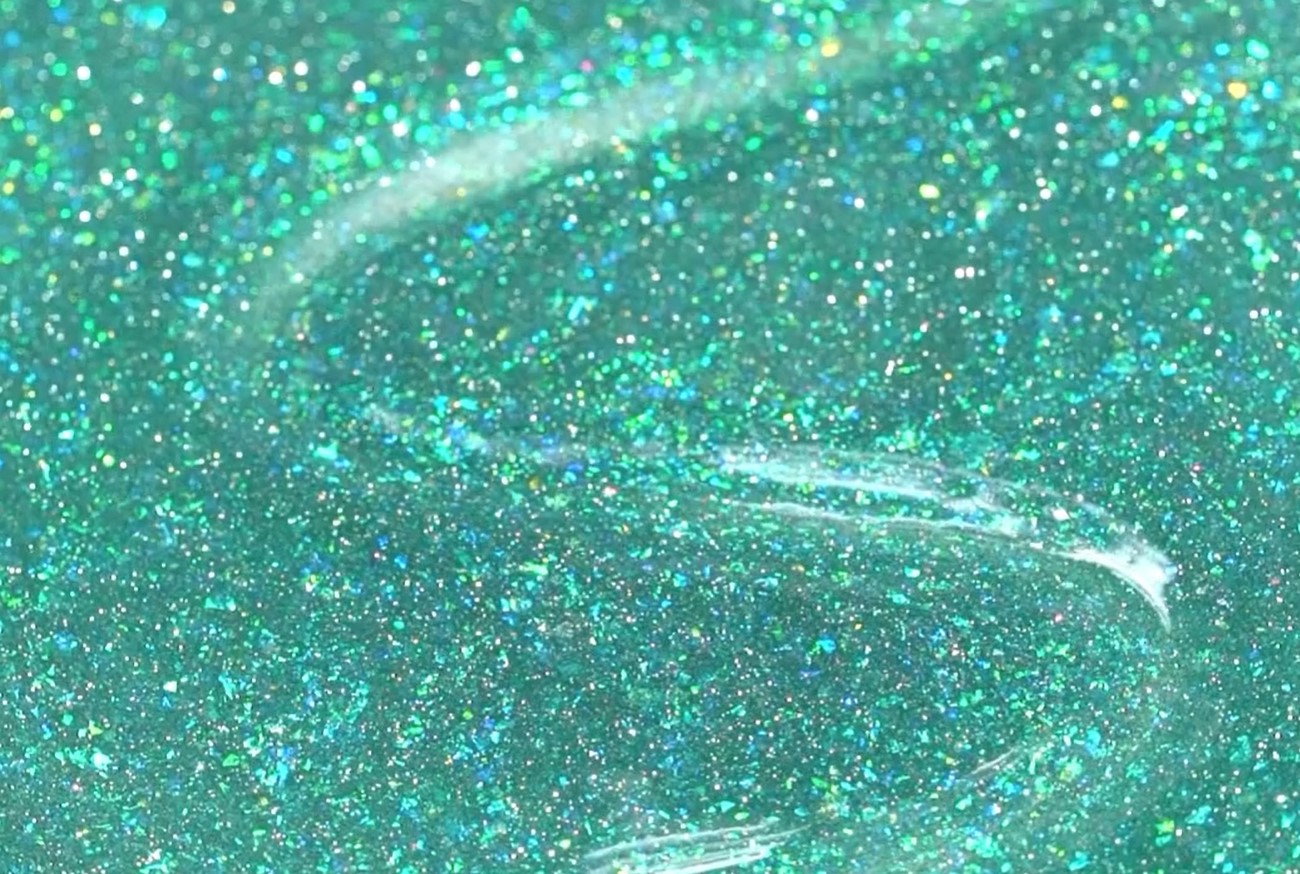 Delikatne holograficzne drobinki z efektem SUNFLASH cudownie mienią się w promieniach słońca, przywołując obraz piaszczystych plaż i błyszczących muszli wyrzucanych na brzeg przez morskie fale.
