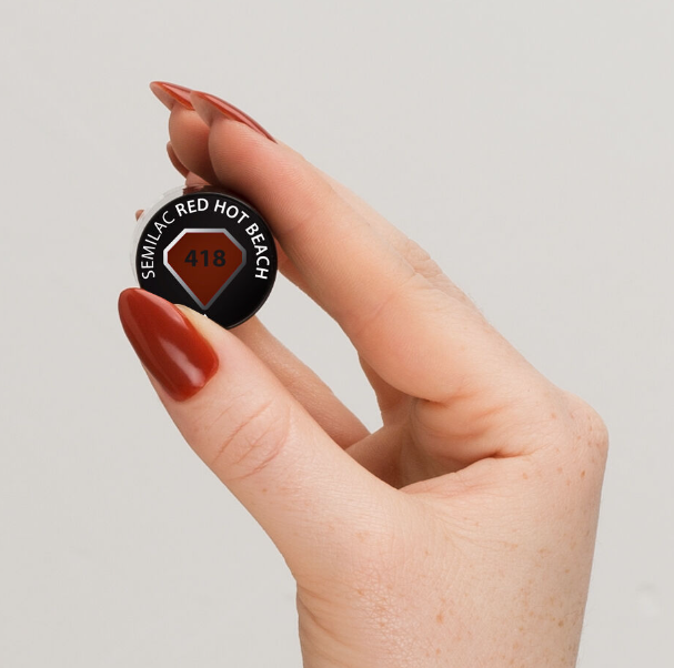 SEMILAC LAKIER HYBRYDOWY 7ml 418 RED HOT BEACH Into Her Nature! to barwa rozgrzanej plaży . Mix żywiołów: ziemi i wody, które razem tworzą niezapomnianą, głęboką czerwień. Kolor dla osób nie bojących się marzyć i sięgać pełnymi garściami po swoje najskrytsze pragnienia.