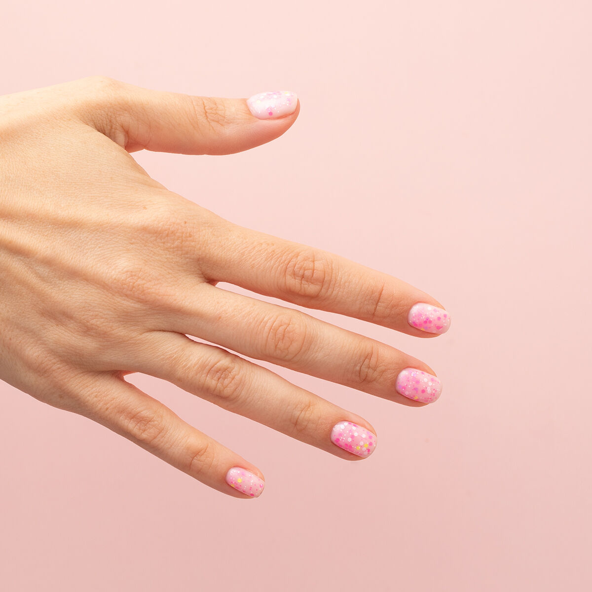 Festival Vibes to kolor, który tańczy – nawet jeśli Ty akurat siedzisz na leżaku z lemoniadą. Jego półtransparentna różowa baza z drobinkami w odcieniach żółci, bieli i fuksji sprawia, że paznokcie żyją własnym rytmem. Inspirowany letnimi festiwalami i wolnością bycia sobą, sprawdzi się zarówno w wersji total look, jak i jako kolorowy dodatek do klasyki. Wybierz go, jeśli chcesz, żeby Twoje lato było tak barwne jak Twoje emocje.