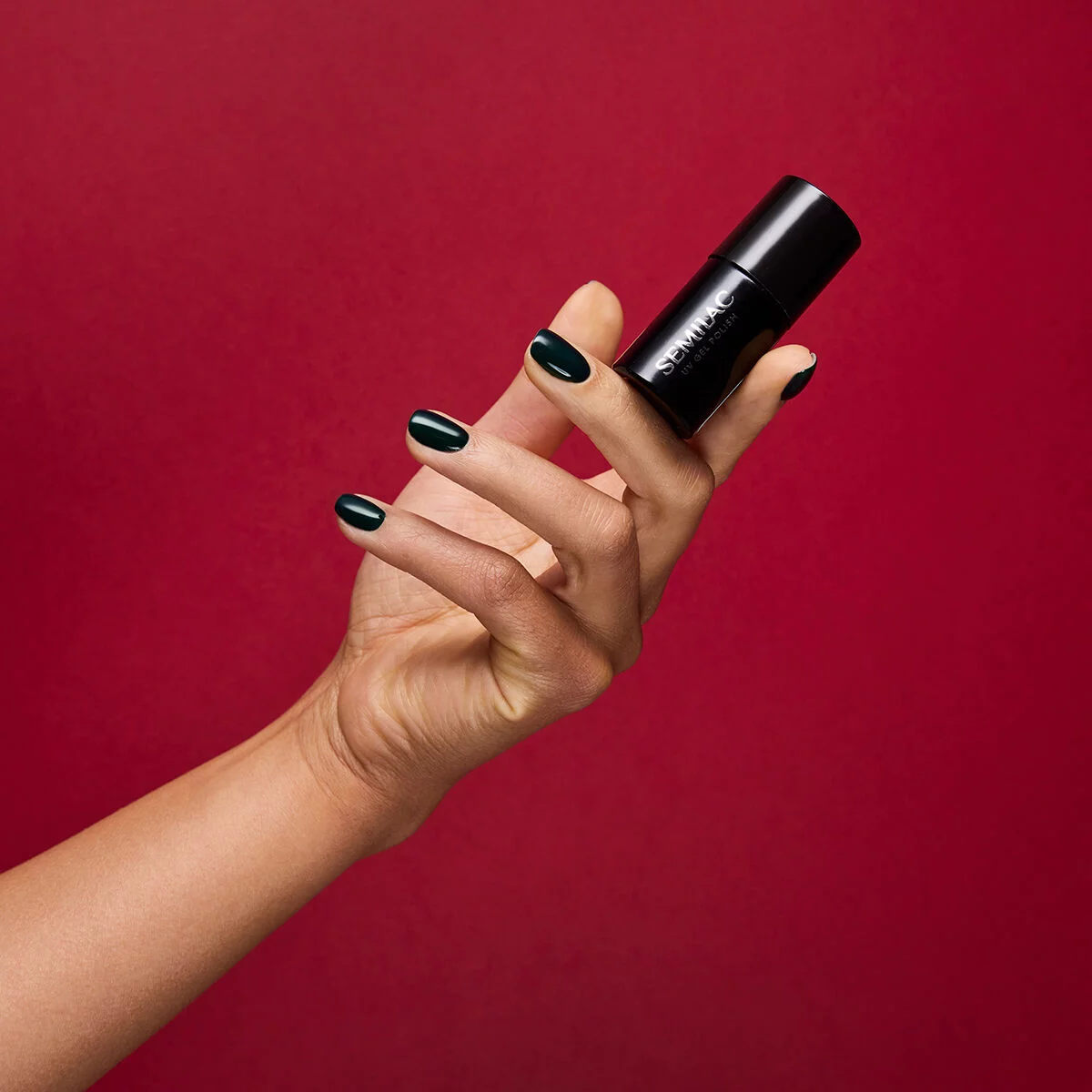 Ikoniczny efekt jelly w świątecznym wydaniu. To półtransparentny lakier hybrydowy w odcieniu głębokiej zieleni, który łączy w sobie świeżość i elegancję. Dzięki żelowej formule daje efekt „szklistego” manicure – subtelnego, ale pełnego głębi.