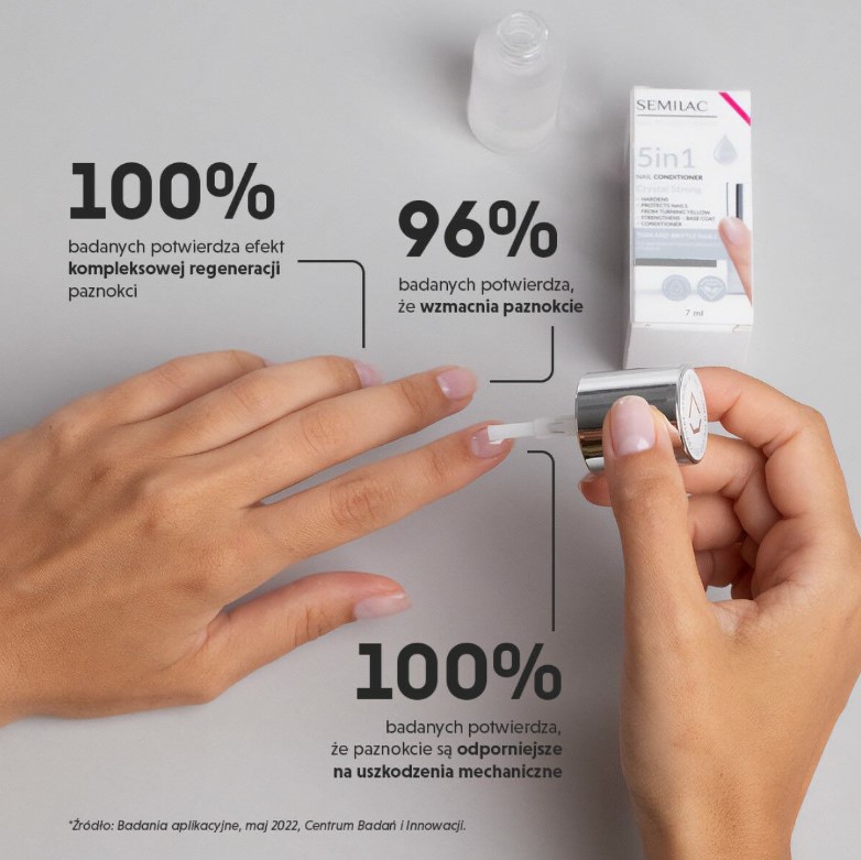 Bezbarwna, regenerująca odżywka dla kruchych i cienkich paznokci. Pierwsze efekty widoczne już po 7 dniach stosowania.
