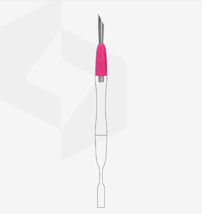 Precyzyjne usuwanie skórek – „Kopytko skośne” zostało zaprojektowane do uniesienia i odsunięcia szorstkich i mocno przylegających skórek, a także oczyszczenia wolnego brzegu paznokcia.