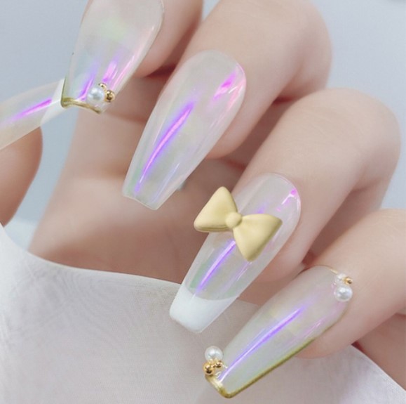 Cudowny sposób na efektowne i szybkie ozdobienie paznokci. Ponieważ ozdoby można łączyć, mogą stanowić piękne uzupełnienie manicure, wszystkich paznokci, jak i dla Pań lubiących bardziej subtelne stylizacje tylko 1. Będzie się pięknie mienić na wakacjach, zaręczynach, czy ślubie. Ozdoba jest srebrna, z kryształkiem bezbarwnym, lekko wygięta, więc świetnie dopasowuje się do krzywej paznokcia. kokardki na paznokcie