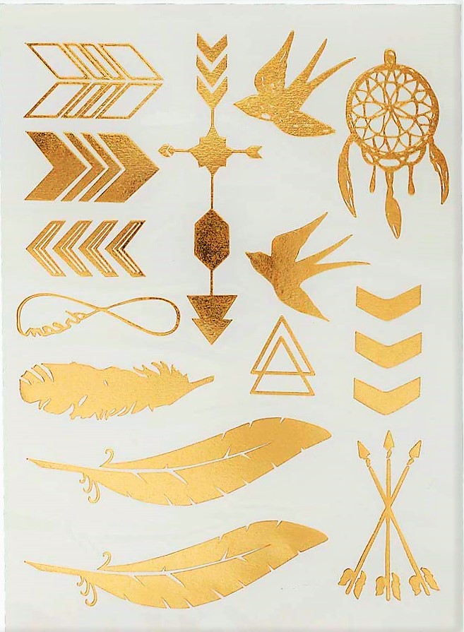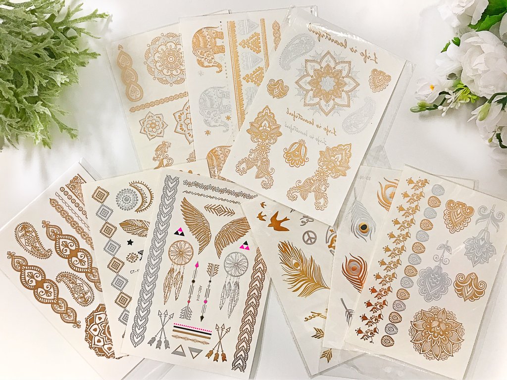 Ogromna ilość wzorów w odcieniach słota i srebra oraz turkusu pozwoli na stworzenie własnych tatuaży. Są proste w aplikacji a efekt utrzymuje się na skórze do kilku dni.