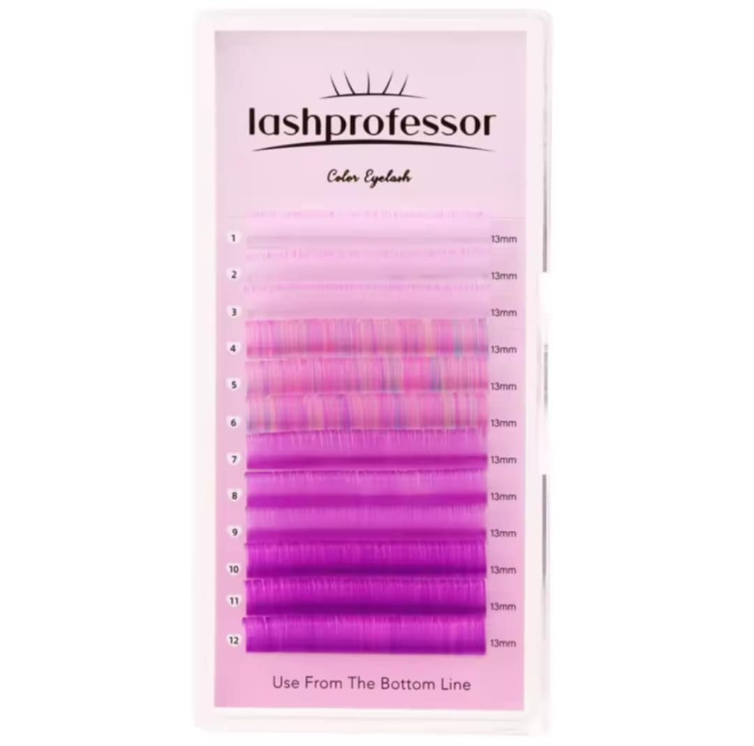 w skręcie D, grubości 0,07 mm i długościach 12mm, to propozycja dla stylistek, które chcą tworzyć wyraziste, artystyczne i nietuzinkowe stylizacje oka. Delikatna baza rzęsy płynnie przechodzi w intensywny kolor, tworząc efekt ombre w odcieniach różu, niebieskiego, zielonego, fioletu, pomarańczowo-żółtego i czerwono-pomarańczowego. Idealne zarówno do akcentów kolorystycznych, jak i pełnych stylizacji w stylu fantasy, anime, festiwalowym lub artystycznym. Wysokiej jakości włókno syntetyczne klasy premium zapewnia trwałość i komfort noszenia.