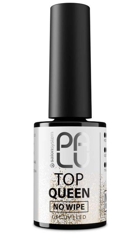 Top Royal No Wipe marki Palu to profesjonalny, przezroczysty top hybrydowy bez warstwy dyspersyjnej, wzbogacony o delikatny srebrny brokat. Tworzy on subtelny, opalizujący efekt syrenki, który mieni się przy każdym ruchu dłoni – niczym lustrzana tafla w blasku księżyca. To idealne wykończenie dla stylizacji ślubnych, romantycznych i klasycznych – wszędzie tam, gdzie chcesz uzyskać lekki, świetlisty połysk bez przesadzonego blingu.